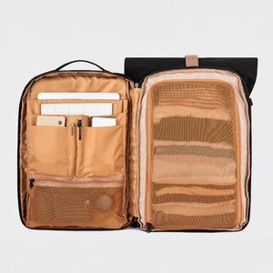 From 20L to 45L, it expands and adapts to your rhythm: roll it up for extra space, roll it down for simplicity, and discover hidden pockets when adventure calls. A companion for daily life, travel and, of course, the dancefloor.