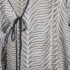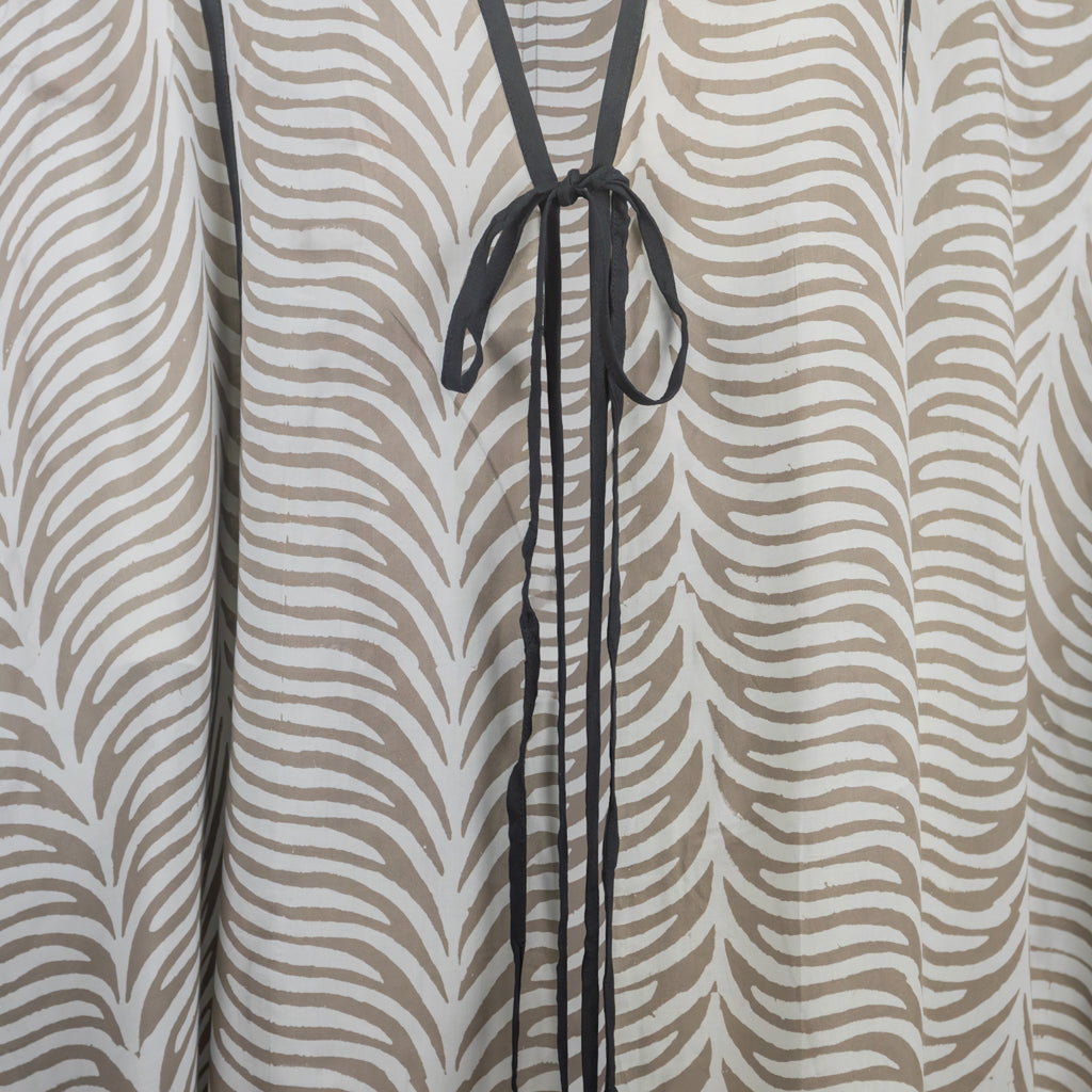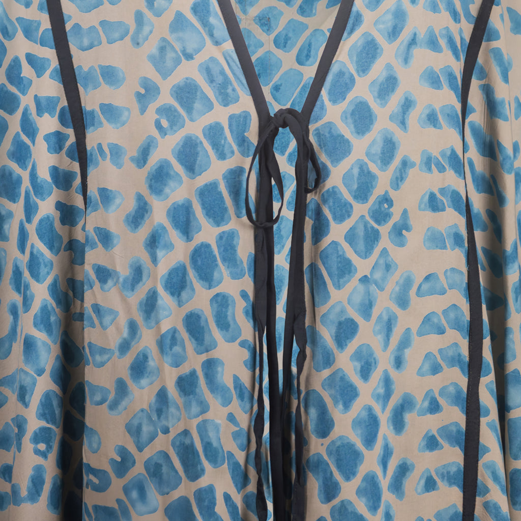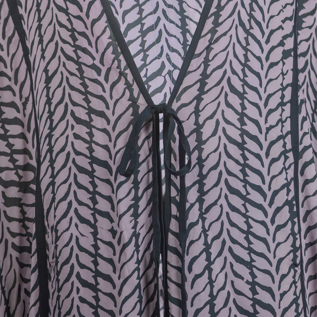 This comfortable kimono was hand block printed and dyed through a wax resistant technique. Extremely versatile, this loose fit piece is made with extra-fine and soft beach wood modal, a great warm weather fabric.